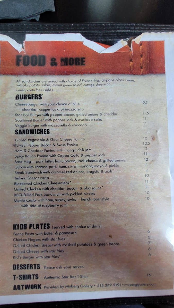 Introducing the menu at Star Bar, located at 2811 Ingersoll Ave, Des Moines, IA, is a delightful journey through classic comfort food and timeless favorites. Known for its inviting atmosphere and friendly staff, it's a spot that feels just like home.